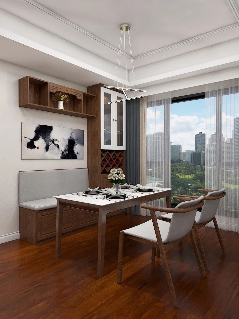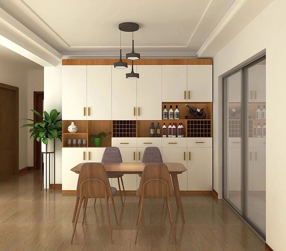如果餐廳面積足夠大,那么餐邊柜的發(fā)揮空間自然也就大了,整墻到頂設(shè)計(jì)、多功能組合設(shè)計(jì)等形式就都能輕松玩轉(zhuǎn)。