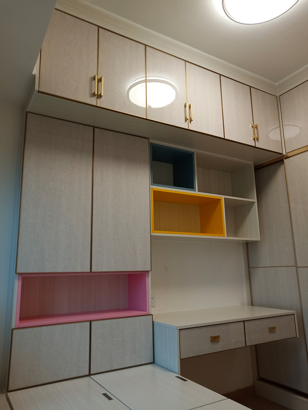 現(xiàn)在全鋁柜子很流行無把手設(shè)計,門板采用按彈門設(shè)計,柜門無把手設(shè)計,看起來更加簡潔,特別是白色的柜子門板無把手設(shè)計,顏值非常高,并且很百搭!