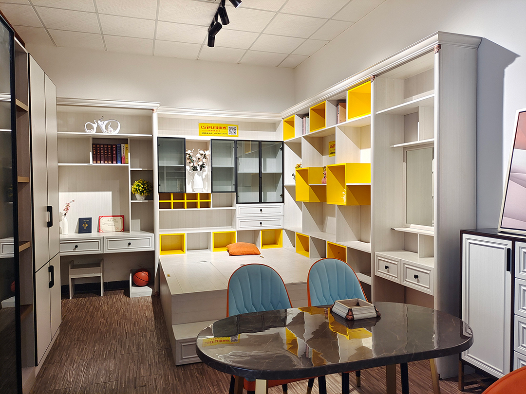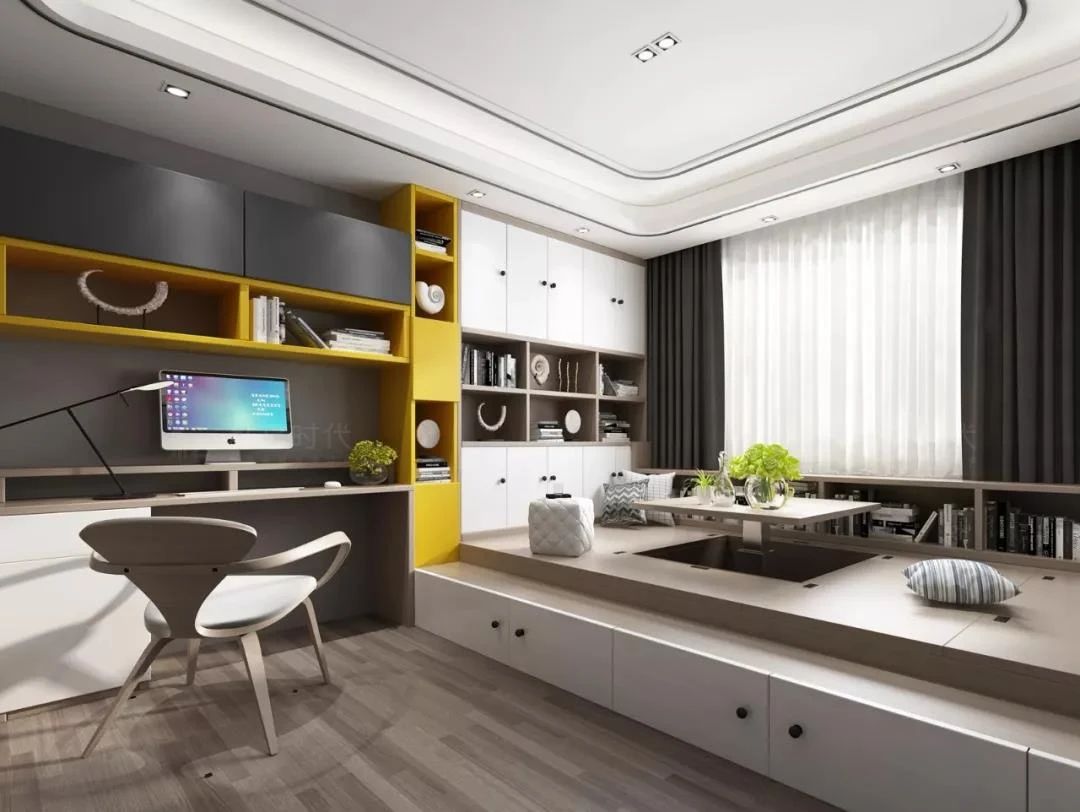隔板款的全鋁榻榻米一般用在書房。在榻榻米下方設(shè)計(jì)矮柜,或在全鋁書柜中增加隔板,既方便收納書籍和雜物,也可以讓書房看上去更干凈利落。