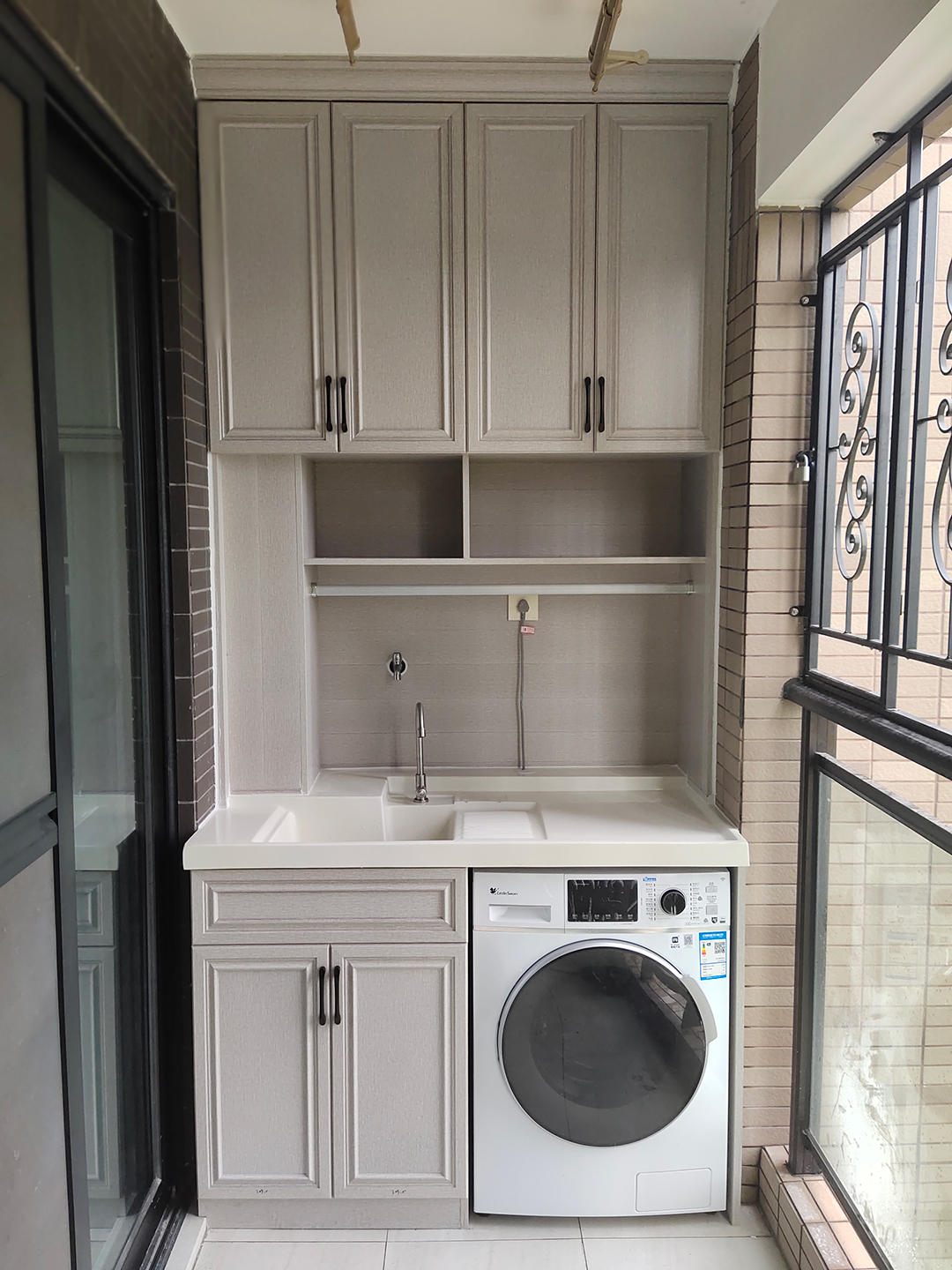 洗衣機放置最好用的空間莫過于陽臺,節(jié)省了衣物搬運的時間,動線最短,最方便。陽臺裝全鋁材質(zhì)陽臺洗衣機柜,不怕風(fēng)吹日曬雨淋,柜體防水防火防蟲蛀,結(jié)實耐用。
