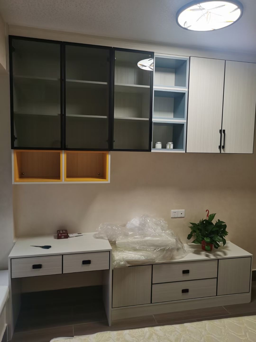 如果采用全鋁家居就不會出現(xiàn)這樣的問題,只要事先和裝修師傅拿準(zhǔn)備好的設(shè)計效果圖溝通,在現(xiàn)場就只要用板扣式模塊化拼接方法,100平方米大概只需要10~14天左右就可以完成,大大縮短了裝修時長。