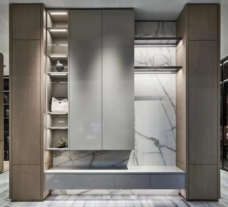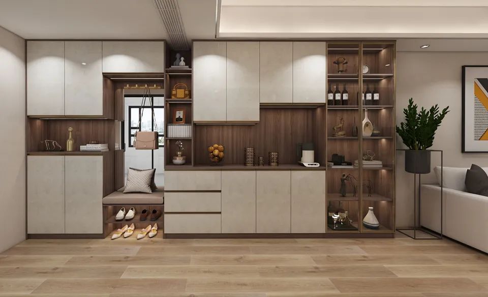 時尚簡約的全鋁定制入戶鞋柜+餐邊酒柜