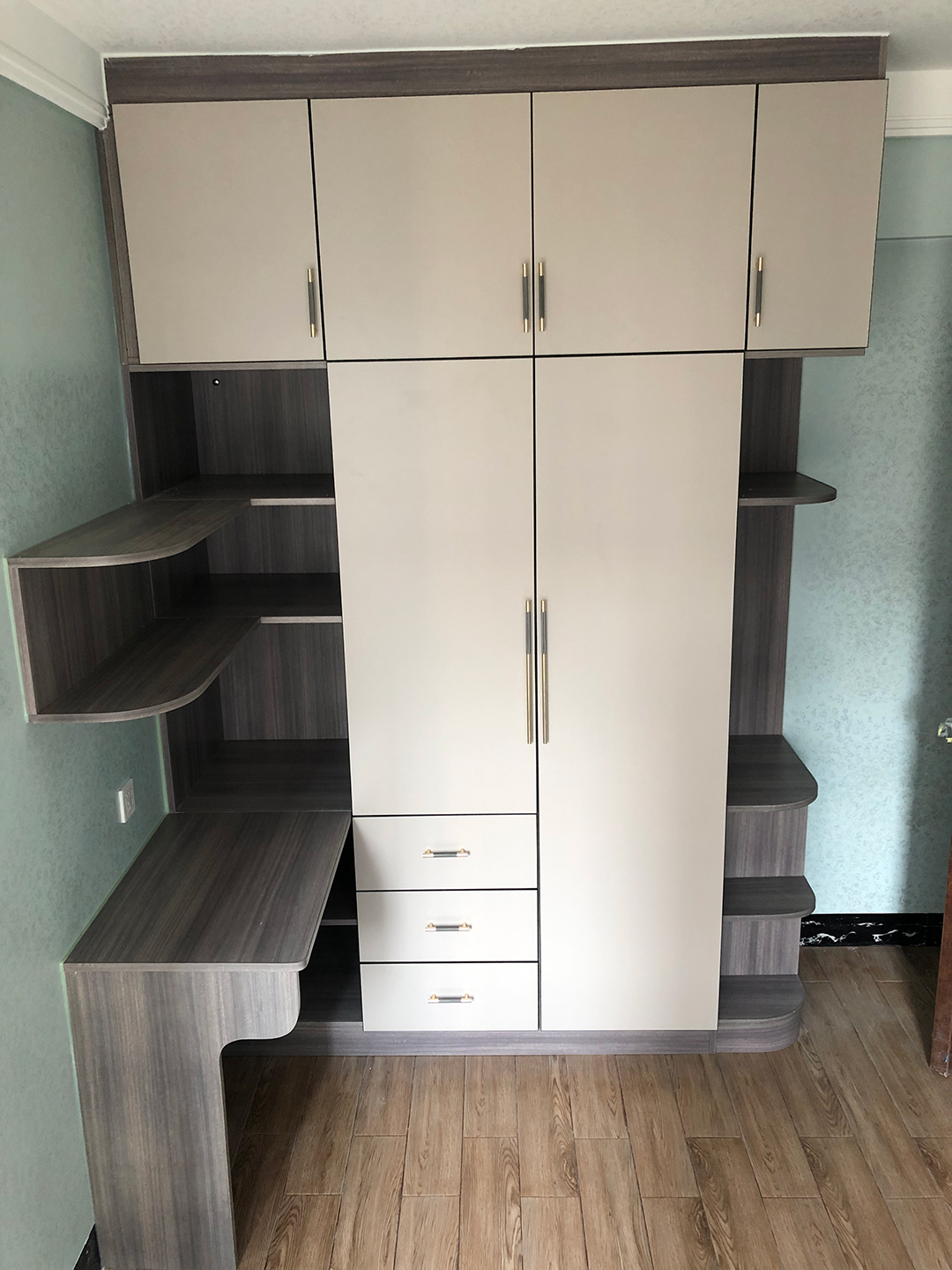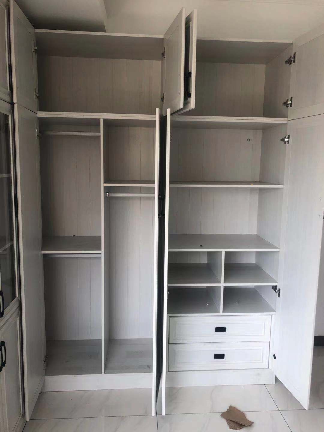這種款式,一般用行現(xiàn)代、簡(jiǎn)約風(fēng)格。門板有造型,外置拉手,不配抽屜。建議是做內(nèi)部抽屜,隔板收納盡量多設(shè)幾層。