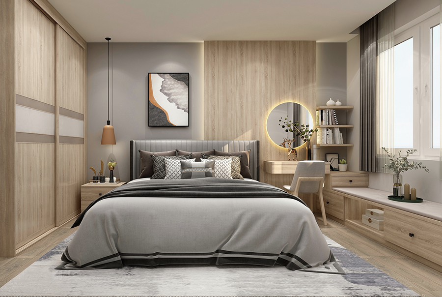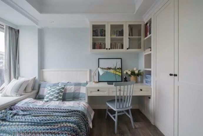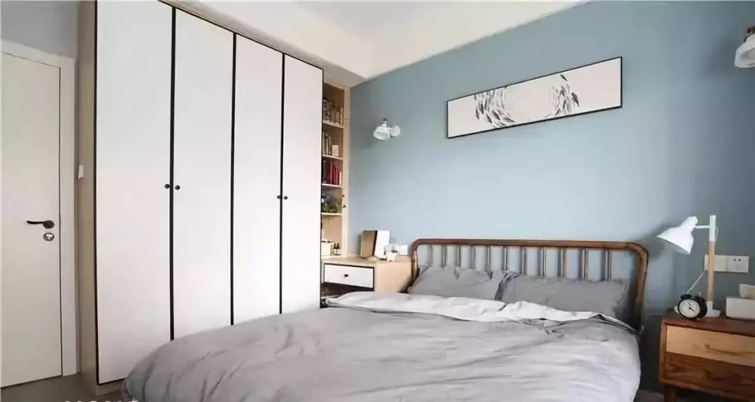 設(shè)計(jì)時(shí),也可以根據(jù)面積,做一些適用的調(diào)整,如放不下床頭柜,可以利用靠床的一側(cè)柜子,做床頭柜設(shè)計(jì),實(shí)用也美觀。