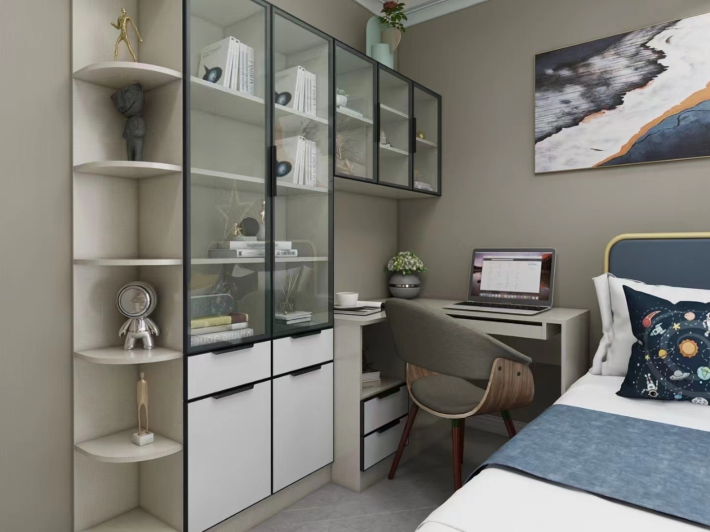 一個(gè)好看的小矮柜,能起到裝飾空間的作用,與書桌和其他柜體呼應(yīng),整體顏值統(tǒng)一又協(xié)調(diào)。
