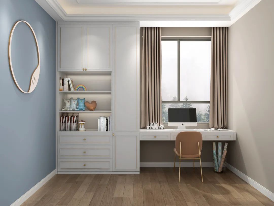 ②兩側(cè)根據(jù)空間和需求,可做書柜/儲(chǔ)物柜/衣柜;