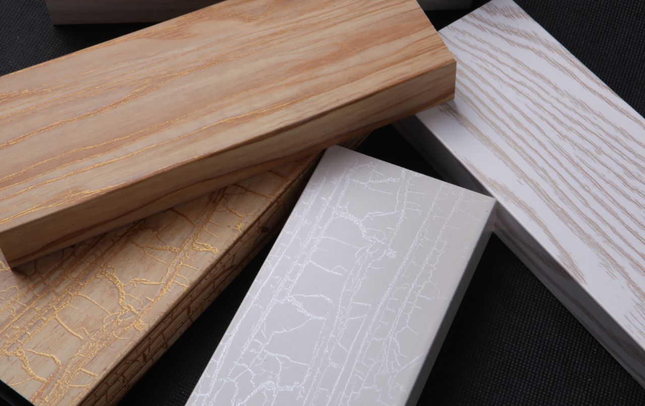 臻品系列木紋工藝屬于噴涂木紋的一類,因其木紋紋理別致,顏色特別而受大眾喜愛。名字也特別美,有進口白榆木、蘇香桐、唐柚、刺猬檀木、馬德里胡核等。
