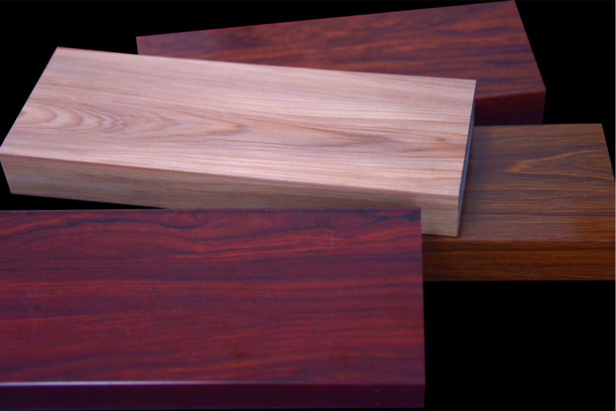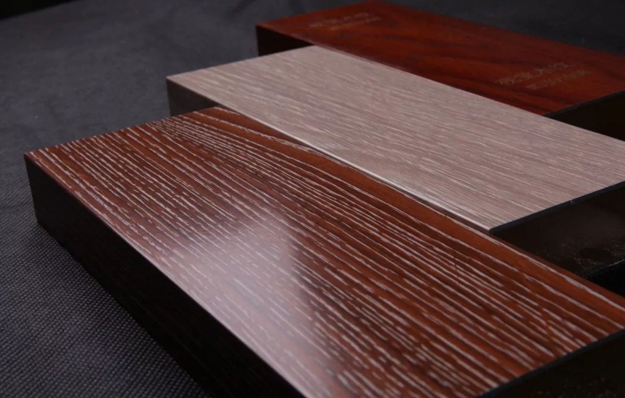 跟噴涂木紋工藝一致,因其木紋紋理別致,顏色特別而受大眾喜愛。下面依次排列的有精品楓木、精品黃梭枝、精品紅酸枝、精品紅豆杉。